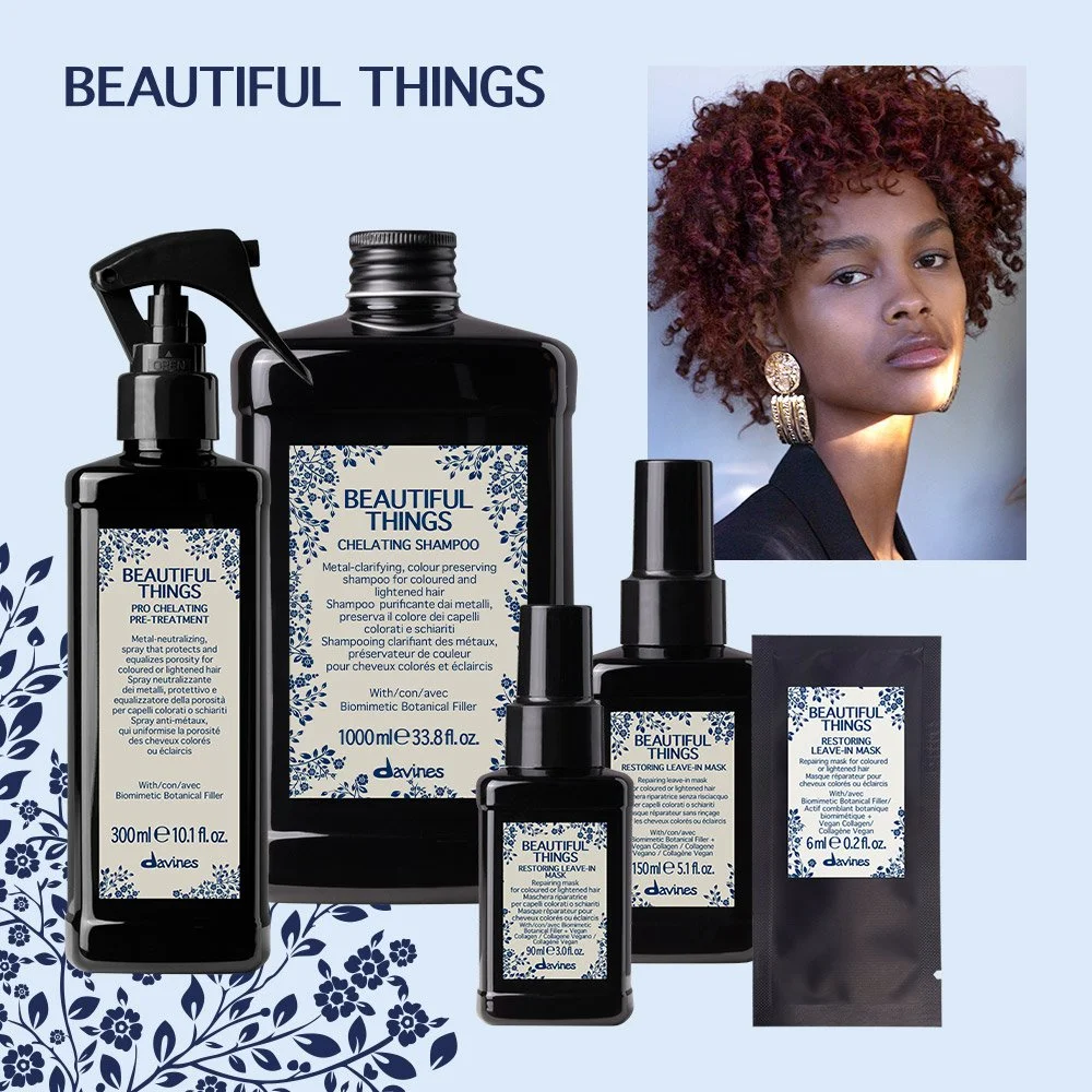 Entwickelt für coloriertes und aufgehelltes Haar ist Beautiful Things eine salonexklusive Linie, die während der Coloration angewendet wird, um Dein Haar von Metallen sowie Mineralrückständen zu befreien und es von innen heraus zu stärken.